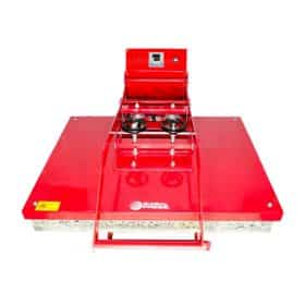 - Una vez alcanzada la temperatura adecuada, baje la palanca para empezar el proceso de estampado, al terminar el tiempo establecido sonará una alarma que nos indicará que está listo el estampado.